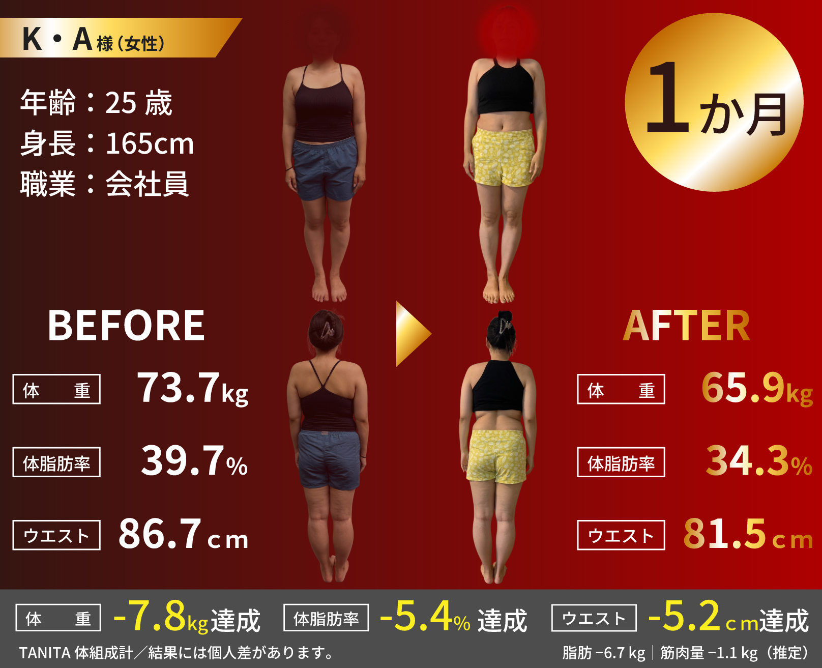体脂肪率の減少、ウエストのサイズダウン、そして“自分に自信が持てる変化”。